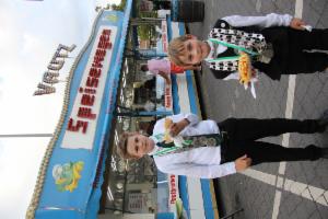 Und auch für das Grevenbroicher Schaustellergewerbe ist es eine verkehrte Welt, will es doch gerne arbeiten, darf es aber nicht. Die Schausteller leiden unter den ausgefallenen Kirmessen, der Wegfall ihrer Geschäftsgrundlage nimmt sogar existenzbedrohende Folgen an. Um das Kirmes- und Schützenfestgefühl doch ein wenig in den Nachwuchsschützen wach zu halten und gleichzeitig die Grevenbroicher Schausteller zu unterstützen, suchten BSV-Jugendbetreuer Ulrich Herlitz und Axel Holzhausen eine Lösung. Gefunden wurde diese dann im benachbarten Wevelinghoven. Die Jung-Verlängerungs-Könige mochten gar nicht glauben, dass es nicht nur einen Fototermin am Schützenturm gab, sondern auch einen weiteren Termin in Wevelinghoven. In Wevelinghoven zum Grevenbroicher Schützenfest in Uniform? Richtig, es ging nach Wevelinghoven. Denn dort hat – offenkundig anders als in der Grevenbroicher Stadtmitte – die Stadt Grevenbroich auf dem Marktplatz Platz für die Grevenbroicher Schausteller und Imbissbetreiber Holtappels mit ihrem Spezialitätenwagen, Edi Deden´s La Créperie und im wöchentlichen Wechsel Vautz Imbissbetriebe und Niko Gössings Schinkenbraterei gefunden. Und hier trafen sich dann die Corona-Repräsentanten des BSV-Schützennachwuchses, um für das heimische Schaustellergewerbe zu werben. Auch Jakob und Jan mit ihren Eltern, den beiden BSV-Jugendbetreuern ließen es sich schmecken und gemeinsam mit und Dank den Schaustellern Holtappels, Deden, Vautz und Gössing kam dann für einen Moment tatsächlich ein wenig Kirmesatmosphäre auf. Täglich von 12.00-20.00 werden die Leckereien auf dem Wevelinghovener Marktplatz nun angeboten. BSV-Jugendbetreuer Ulrich Herlitz und Axel Holzhausen wollten es nicht nur bei dem Fototermin und der Werbung für das heimische Schaustellergewerbe belassen. Zum Kirmeswochenende gibt es für jeden Nachwuchsschützen in den Reihen der Edelknaben und den Jugendschützen einen dicken Gutschein, womit die Nachwuchsschützen mit ihren Familien wenigstens zum ausgefallenen Schützenfestwochenende wenigstens ein wenig Kirmesluft schnuppern können. Denn, das liegt den BSV-Jugendbetreuern ebenso wie dem Schützennachwuchs und sicher auch vielen Grevenbroicherinnen und Grevenbroichern besonders am Herzen: Das Karussel muss sich weiterdrehen!