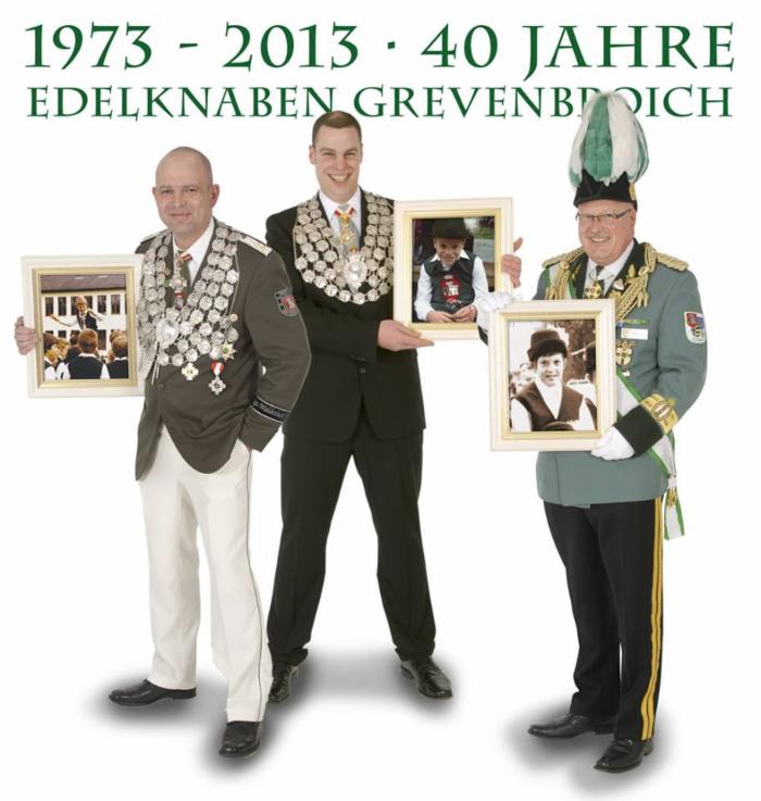 In 2013 haben wir das 40. Gründungsjahr des Edelknabenzuges mit zahlreichen Veranstaltungen, einer Wanderausstellung im Museum Villa Erckens, dem Kreiskrankenhaus, Montanushof, Versandhalle und Lindenhof und Gastabordnungen befreundeter Vereine zum Schützenfest 2013 gefeiert.